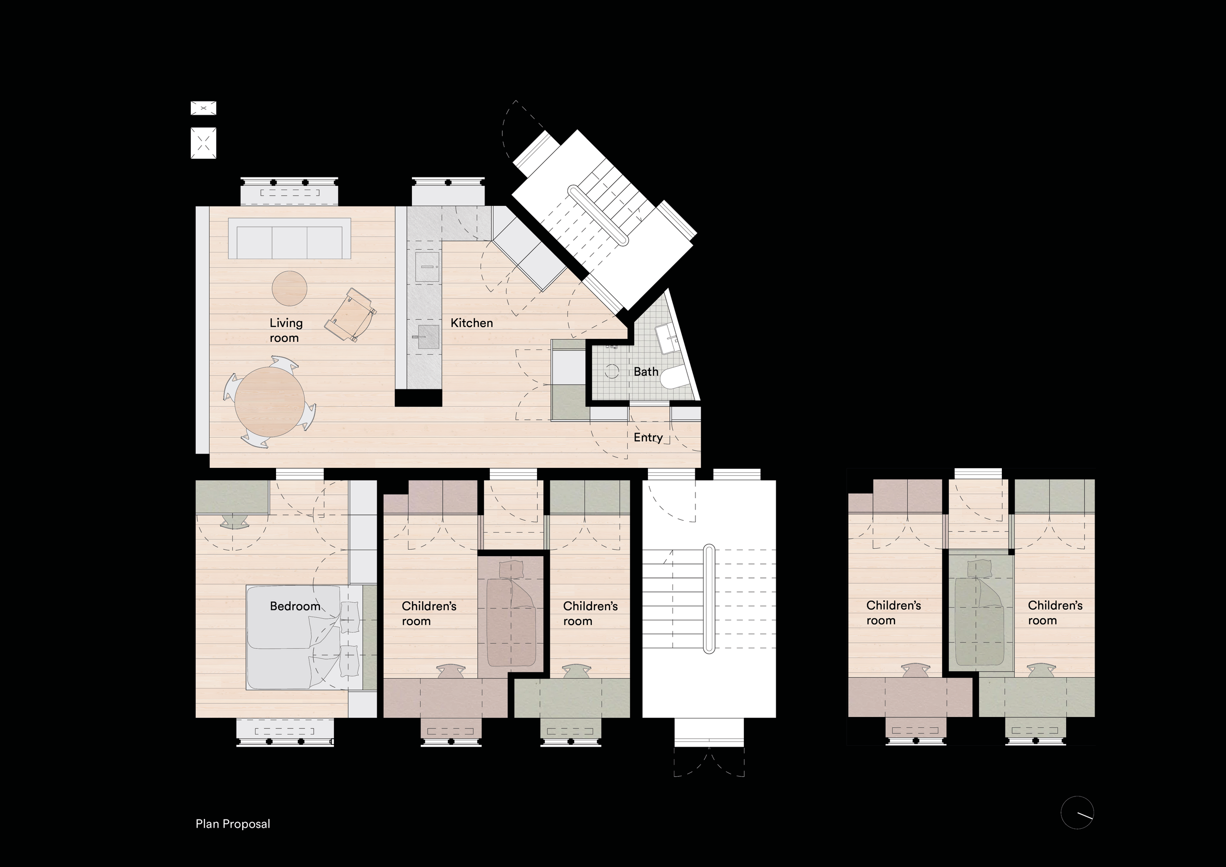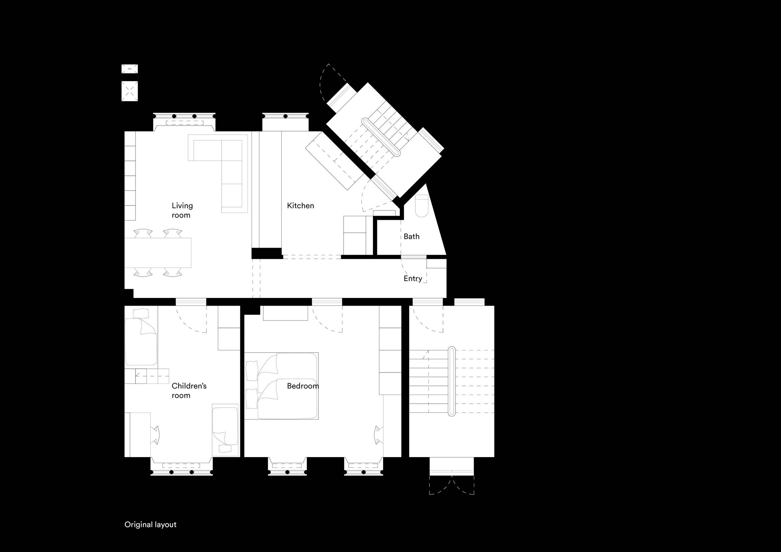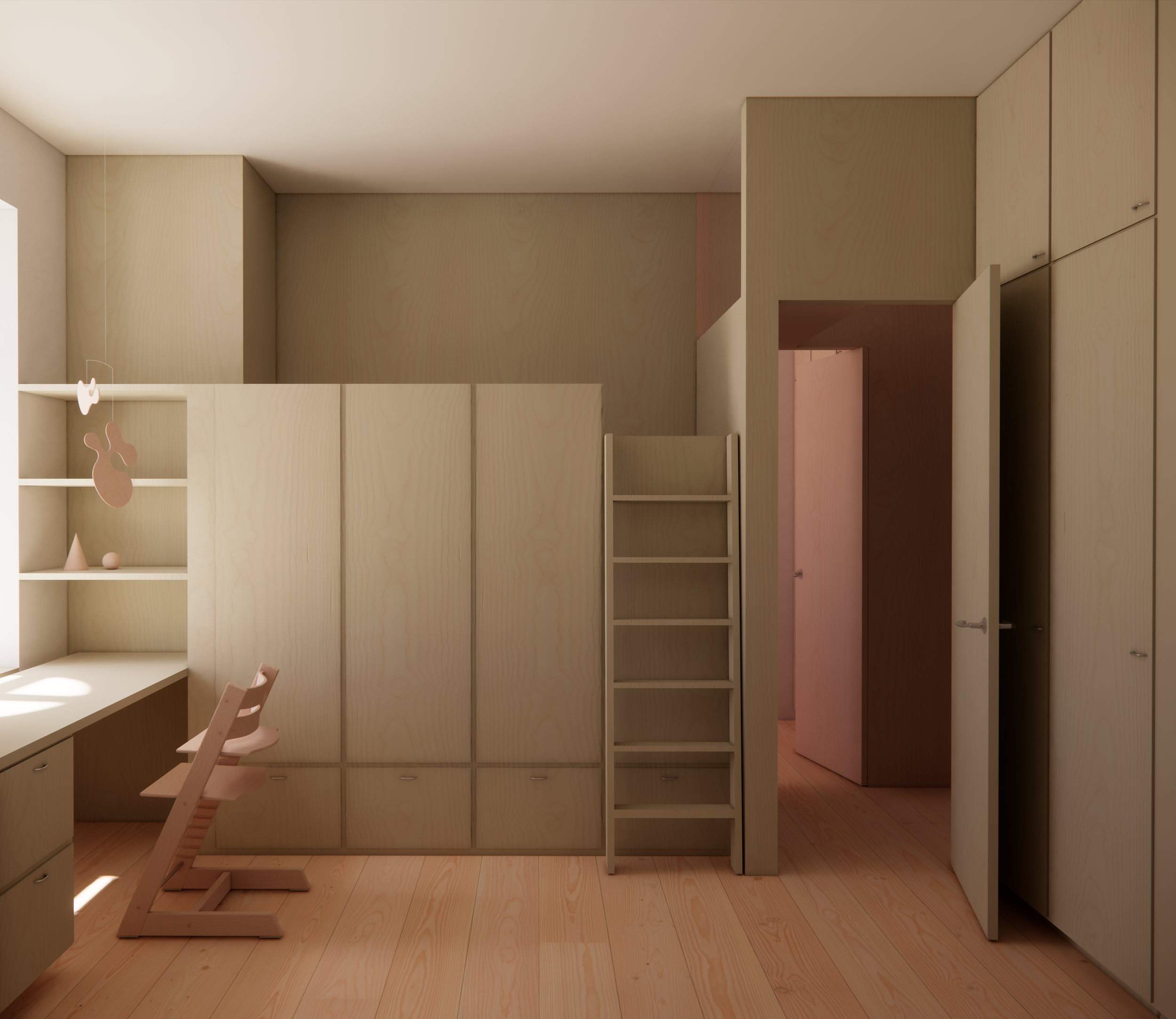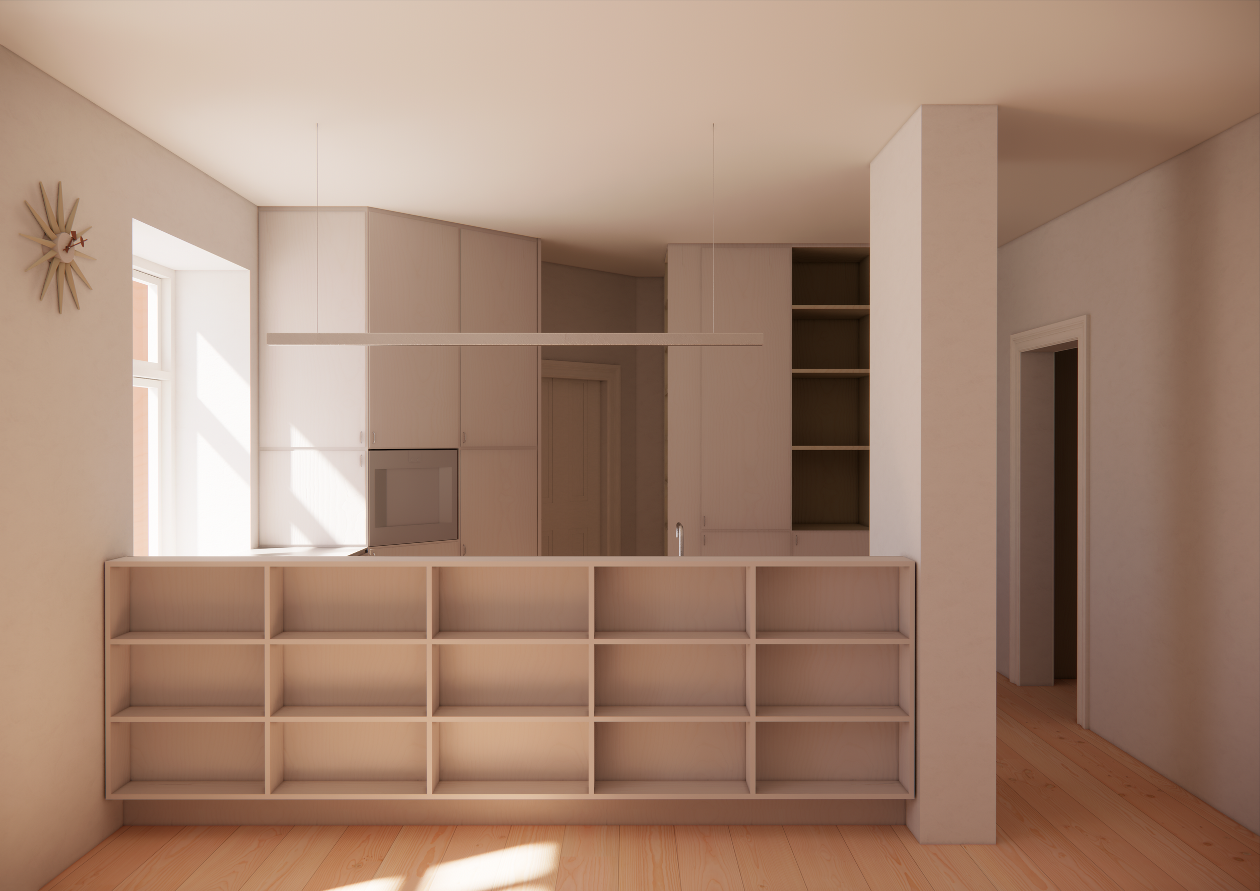 The design strengthens daylight, connectivity, and functionality while preserving the apartment’s proportions and identity. The existing layout of four well-defined rooms is maintained, building on its clear organization and efficient circulation.